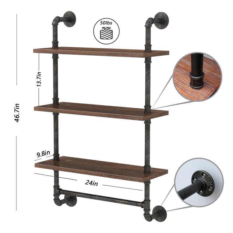 Love the industrial look? Make it work with pipe shelving. Finished in matte black, with a functional towel bar, it not only saves space but brings a sense of elegance to your bathroom or laundry room. An open wall shelf with on-trend factory style, who will say no?