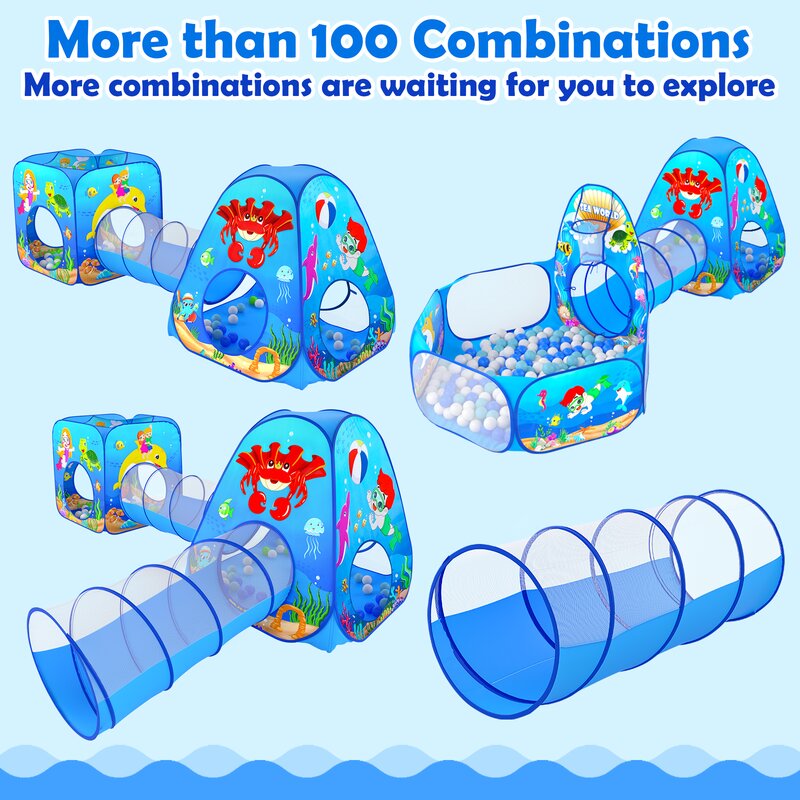 This bright vibrant pop-up ball pit playhouse obstacle course playset will keep children entertained for hours! Super cool target wall game (4 dart balls included) takes the fun to a whole new level and is enjoyable for the kids and parents!! Kids can customize the many different combination maze options, keeping this playset fun and exciting! A must-toy for active toddler, baby, cats, and dogs! We recommend 400-600 balls depending on the ball size.