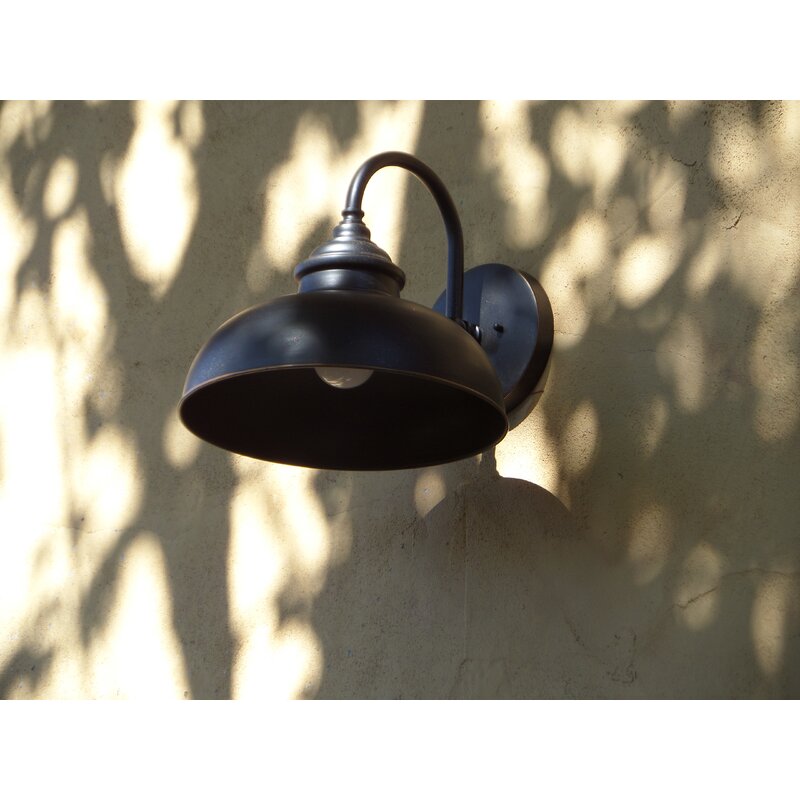 Greet guests with a warm and welcoming glow out on the front porch or bring a bit of brightness to the back patio with this traditional barn light. Designed to live outdoors, it is crafted from weather-resistant metal that doesn’t mind UV light beaming down or rainstorms rolling through. This piece offers a bowl shade and a curved gooseneck all finished in a solid tone, making it the perfect pick for a modern farmhouse.