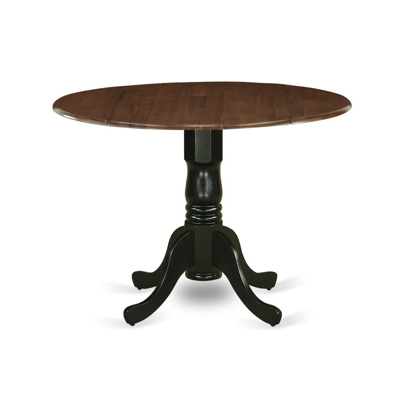 Kitchen Table – Walnut Round Table Top and Two Drop Leaf with Black Pedestal Legs Finish