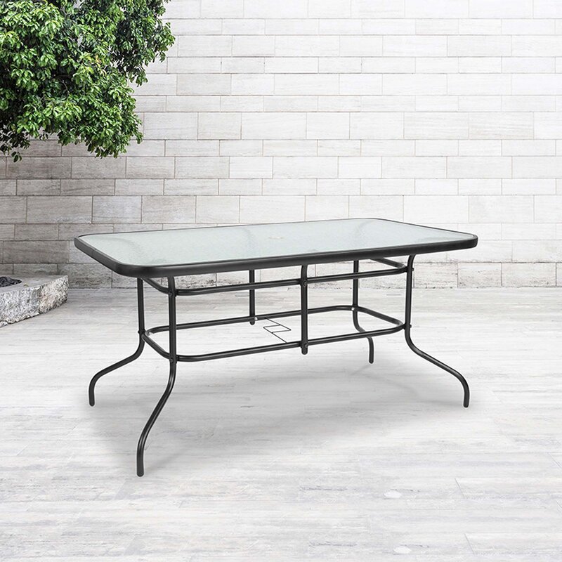 Create the perfect relaxing or entertainment environment with this patio table. This glass table will enhance your bistro, cafe, restaurant, hotel, or home patio space. The ripple designed table top features a smooth surface for keeping items level. The rectangular-shaped top will accommodate a family for outdoor dining and casual gatherings. The table was designed for all-weather use making it a great option for indoor and outdoor settings. For longevity, care should be taken to protect from long periods of wet weather.