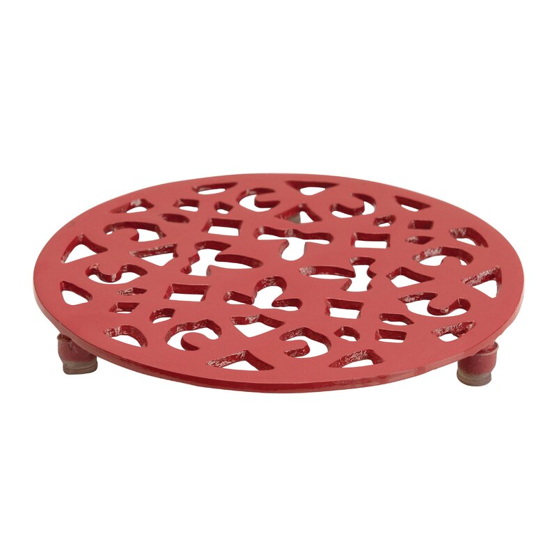 This trivet is perfect for placing hot dishes in the holiday season. Made out of metal, this trivet features a festive red color and a detailed cut-out pattern. This piece is perfect for serving friends and family around Christmas time.