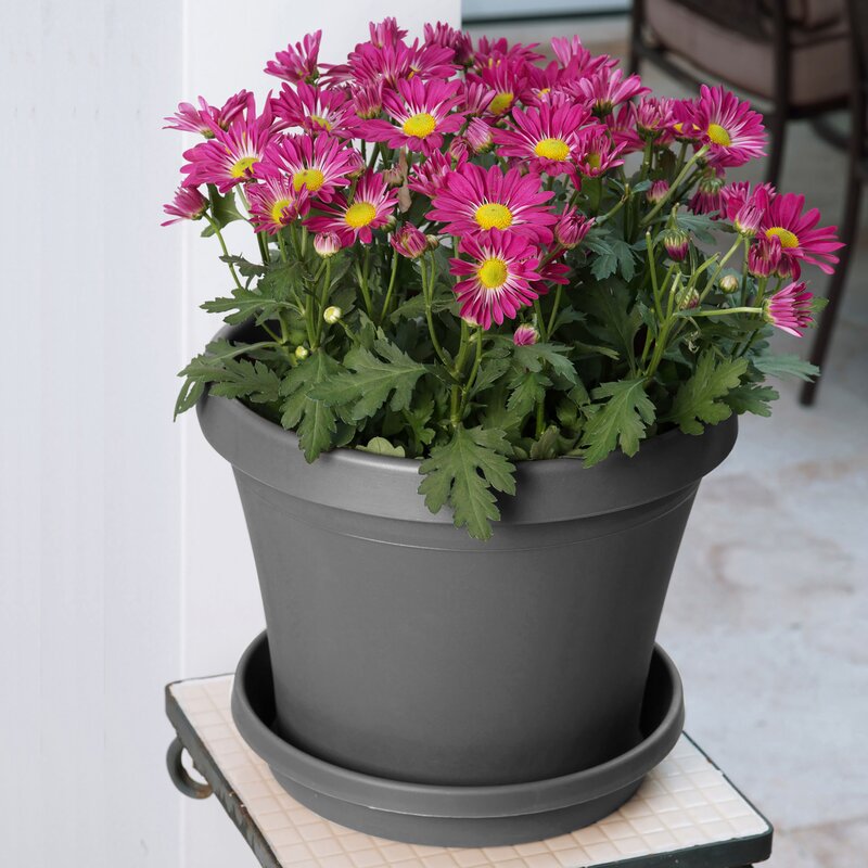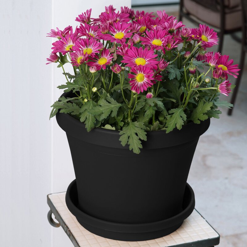 Add a touch of understated style with this charming planter. Made from high-density plastic with a stylish tapered silhouette, this planter is a tough, lightweight alternative to ceramic planters. Pre-drilled drainage holes help to prevent overwatering of your plants. This durable plastic planter is rust-, frost-, and weather-resistant so you can use it all year long, or the season after season. Plus, it is UV-protected so you won’t have to worry about it fading on the warm summer days.