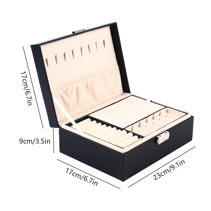High-quality material This double-layer jewelry box is made of PU leather, lined with soft velvet lining plush, exquisite workmanship, durable, and strong structure. The compartment is lined with soft velvet material, which can protect your precious jewelry from dust, fingerprints, scratches, and damage.