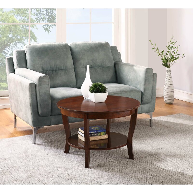 Bring home the classic design Pennels 4 Legs Coffee Table. Its round silhouette features slightly curved legs along with a bottom shelf. With two circular tiers, there is plenty of space to display beautiful centerpieces or entertainment essentials. This rich veneer-finished coffee table is crafted from manufactured wood and the sturdy legs are engineered from solid wood, making this piece durable and easy maintenance. Assembly is simple and requires only 3 easy steps. Available in multiple finishes; this circle table will become a staple in your home right away.