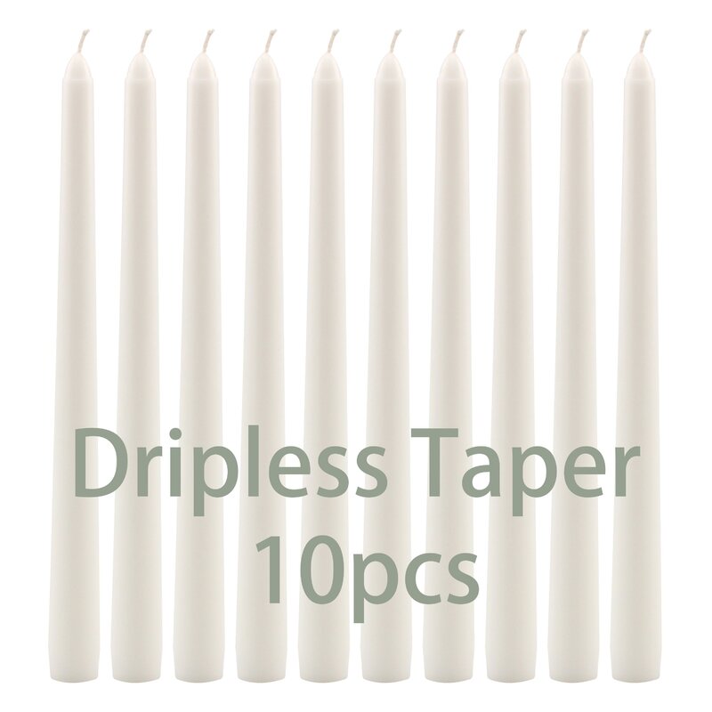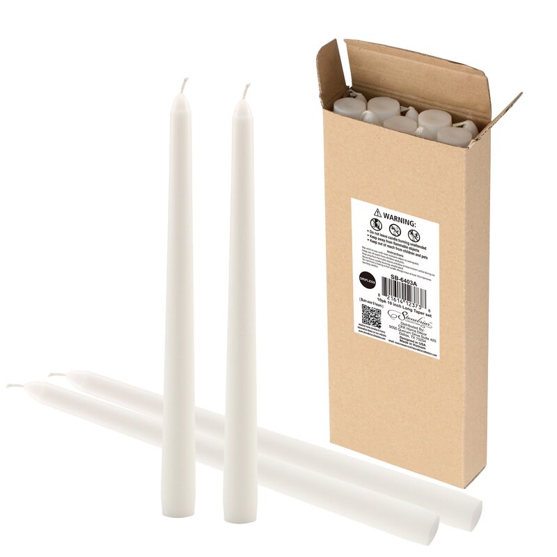 Add a beautiful ambiance to dinner settings or you home decor with Stonebriar’s 10″ long burning taper dinner candle set. This candle set comes with dripless white paraffin wax taper candles with a 7 hour extended burn time. Our candles are made with 100% cotton lead free wicks for a clean smokeless burn. Each taper candle measures 10 inches in height and fit any standard taper candle holder. Use your candles to create a romantic dinner setting or to add extra light to any room in your home. Candle set is also great to use for weddings or parties. Buy your Stonebriar taper dinner candles today and brighten up your home decor.