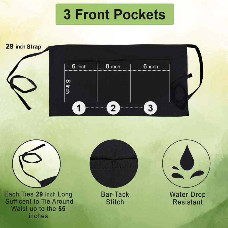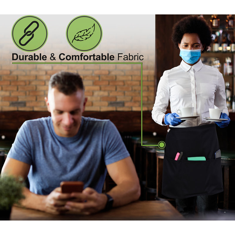 Premium quality: our waist aprons are professionally hemmed & stitched by commercial clothing experts and designed to give you a professional and elegant feeling. These waitress aprons are made from commercial-grade durable fabric which is a combination of fine blended polyester and cotton.