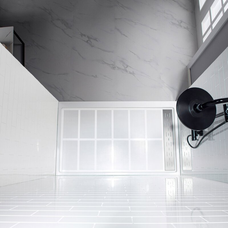 High gloss white provides a smooth, shiny, and reflective look and is easy to clean; non-porous solid surface shower wall panels provide a sleek, streamlined look that makes maintenance a breeze, with no unsightly grout lines in which mold and mildew can hide