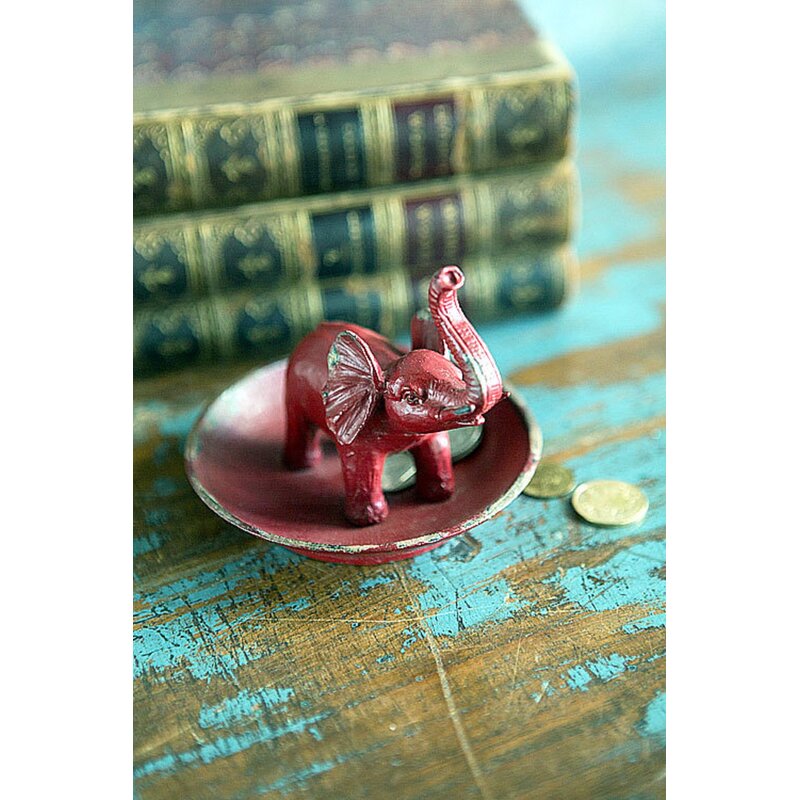 Pewter Elephant Ring Dish In Antique Red Finish