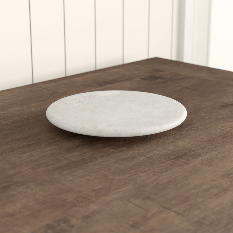 A versatile must-have for your kitchenware collection and beyond, lazy susans offer easy access to spices in the cabinet, food on the table, or accessories in your powder room! Take this one for example: Crafted from marble, it boasts a neutral white coloring for a look that won’t clash with your color palette. Taking on a circular silhouette, it showcases a spinning top that allows pieces to more easily reached whether set as a centerpiece on your dining ensemble or used to maximize space in a cabinet.