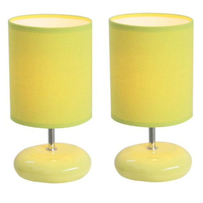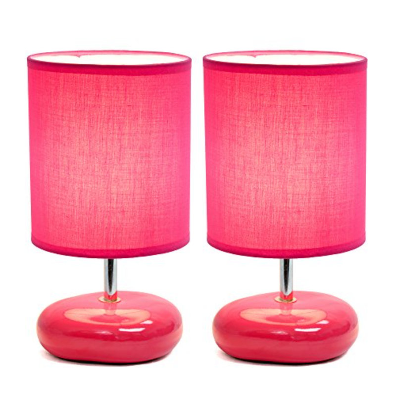 Perfect for casting a warm glow over your little one’s nightstands, this two-piece 10″ mini table lamp set is an adorable option for brightening a bedside. Crafted from ceramic stone, each lamp’s round base sports a glossy colored finish. Up top, a matching tall drum shade diffuses bright light from a single 40 W incandescent candelabra-base bulb (not included) as it’s dispersed throughout your space. Powered by a 60″ length of cord, each lamp is operated by a simple in-line switch.