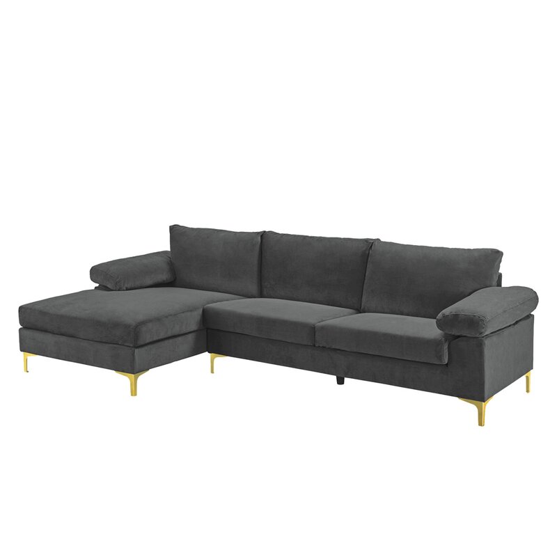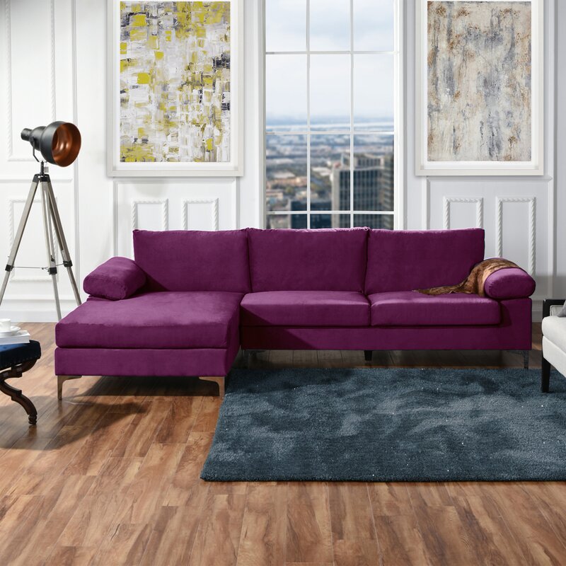 Fit up to five on this sleek sectional sofa, the perfect addition to any den or living room ensemble. Wrapped in a velvet upholstery, this sectional introduces a touch of texture to your interior design, while chromed metal legs round out this piece with a nod to contemporary style. Removable high-density foam cushions give this sectional its medium firmness.