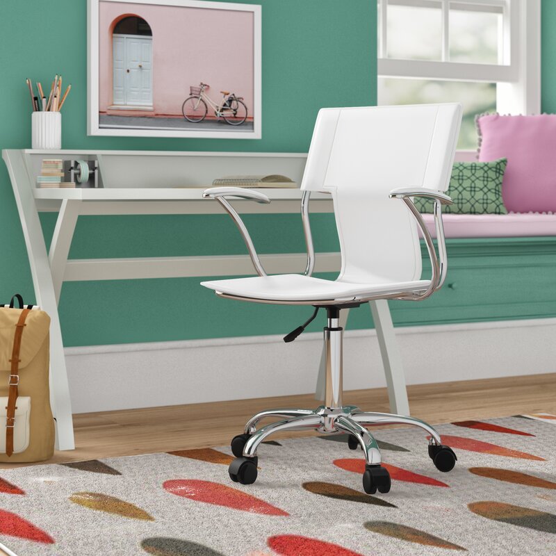 Far from just a perch when working from home or surfing the web, this office chair brings contemporary style to your teen’s space. Crafted from steel, it showcases a chrome-colored five-star base complete with casters for improved mobility. Up top, the seat and back are upholstered with vinyl awash in a solid finish for a look that won’t easily clash with your current color palette. Plus, it includes a lever for adjusting the height to what’s right for you.