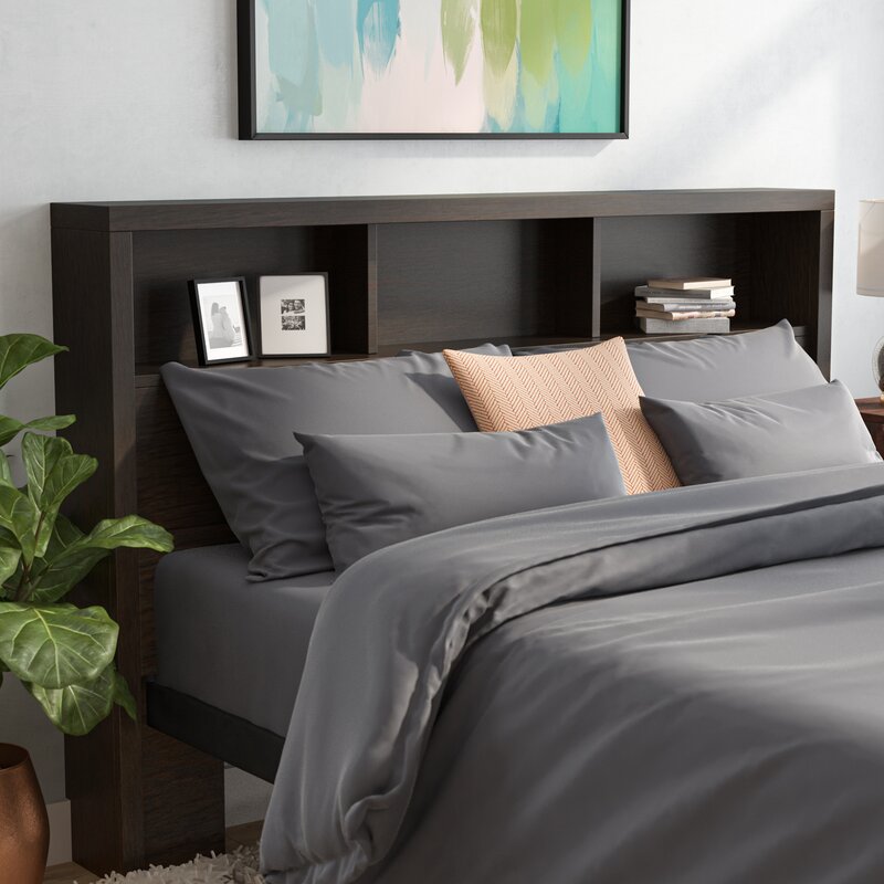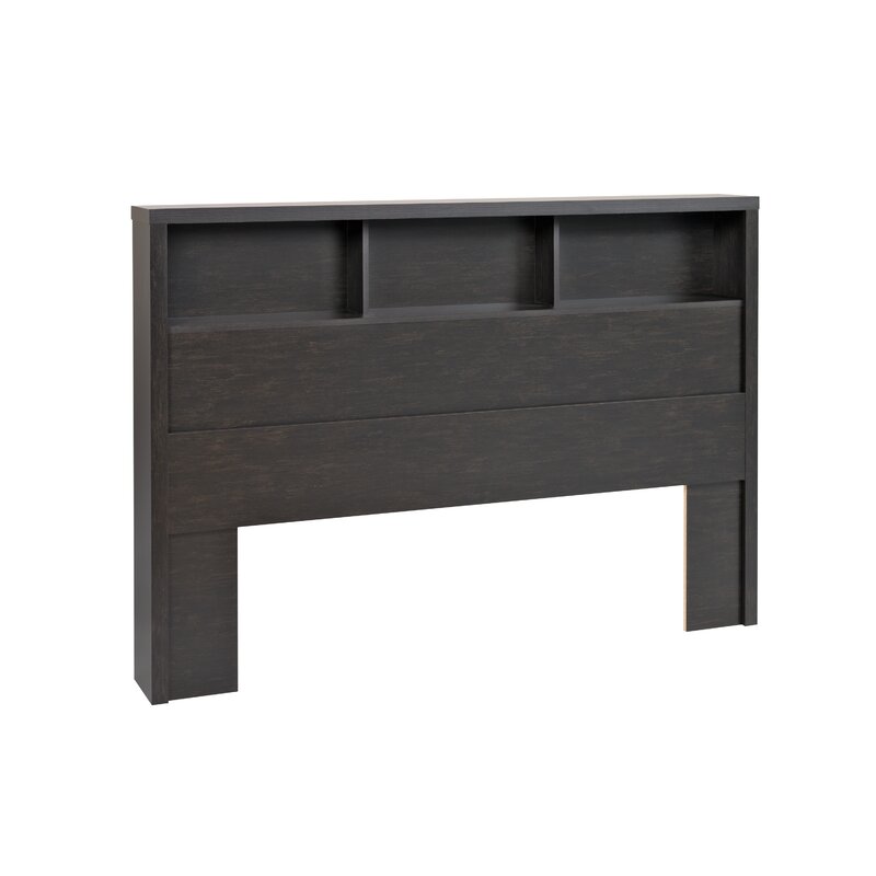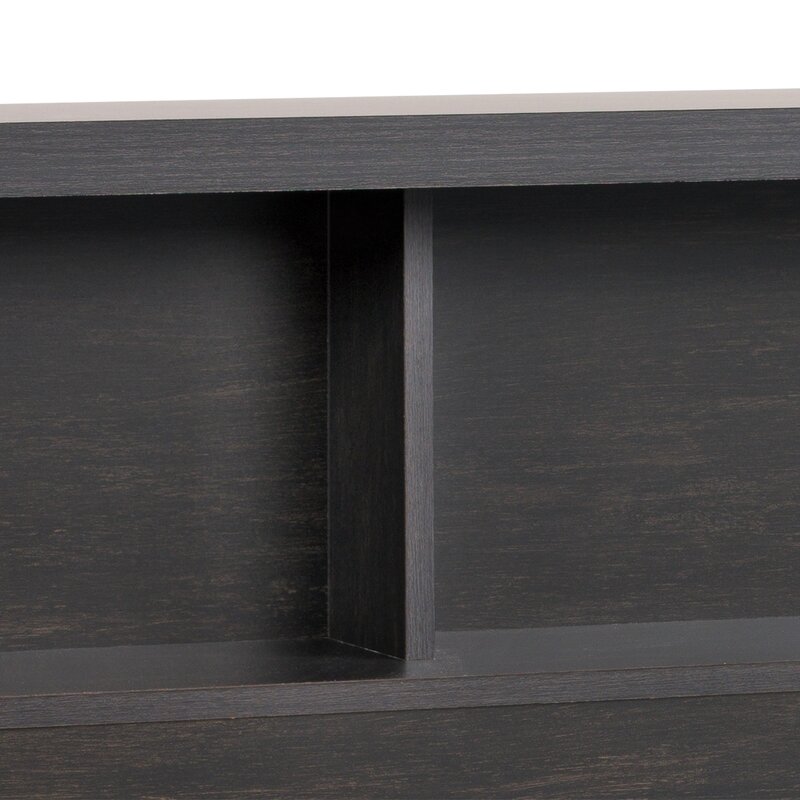 Love books so much that you dream about them a night? Turn your restful retreat into a little library with this stylish headboard! Crafted from manufactured wood, it strikes a clean-lined silhouette for a touch of contemporary style, while its washed black finish is versatile enough to blend with nearly any color palette. Plus, it features shelves for keeping your collection of well-thumbed novels, framed family photos, or that new accent piece you adore.