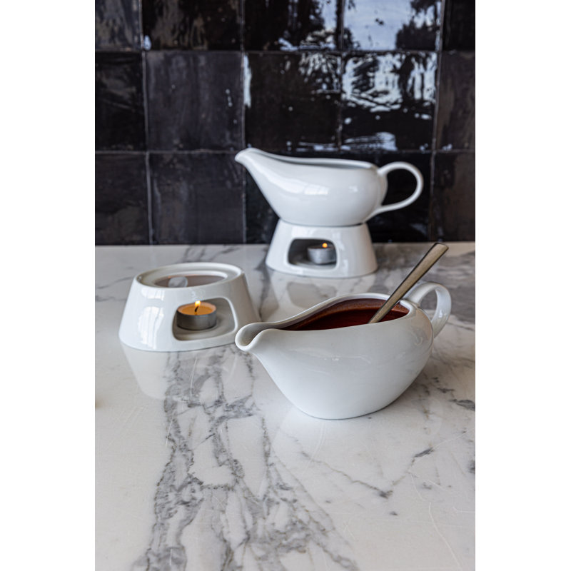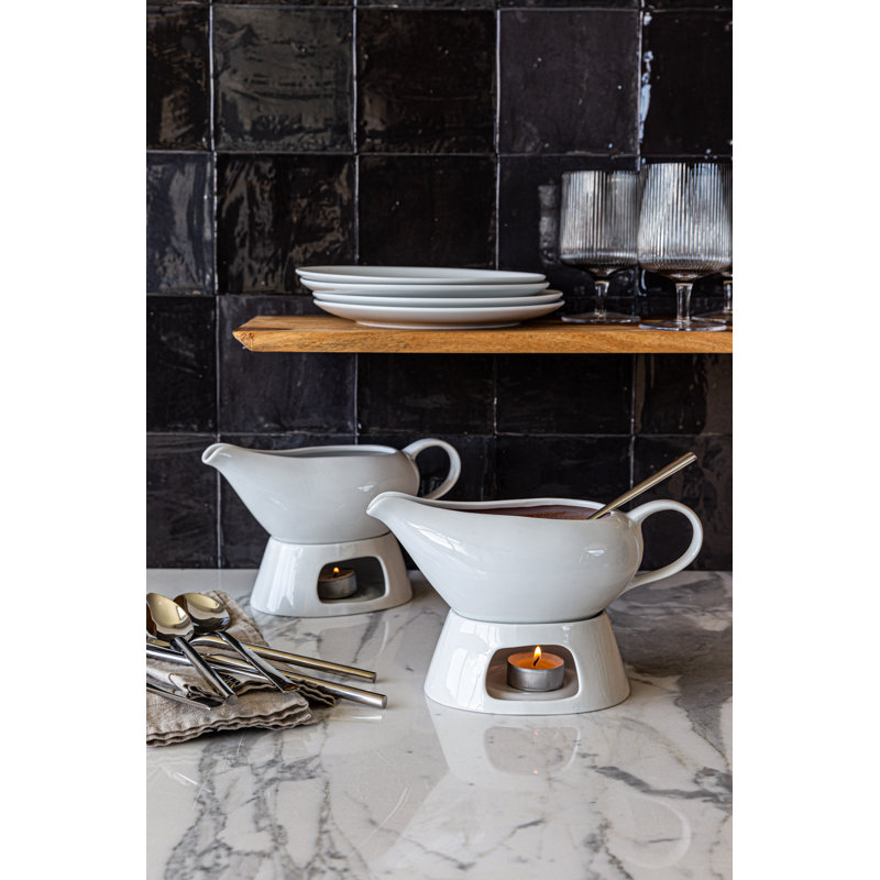 A set of two gravy boats completes any dining experience. Made of durable stoneware, these gravy boats by over and back include warmer stands to keep gravy nice and warm.