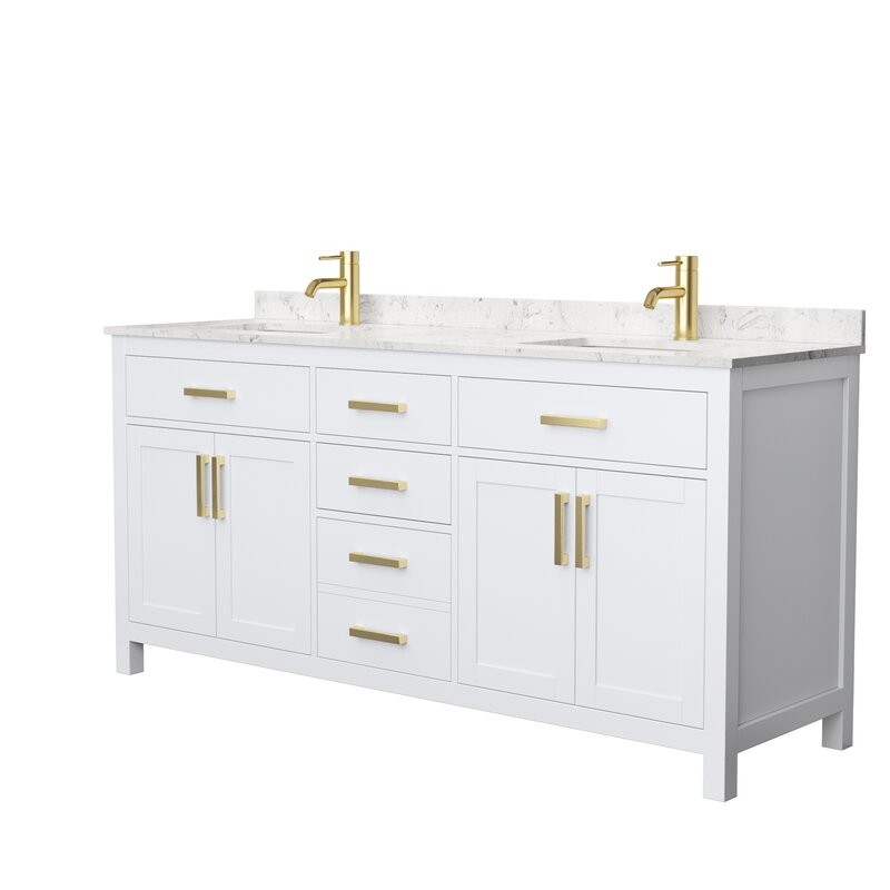 Fully extending under-mount soft-close drawer slides. Concealed soft-close door hinges. The cultured Marble counter includes a 3″ backsplash and reversible side splash. Porcelain under-mount sinks included.