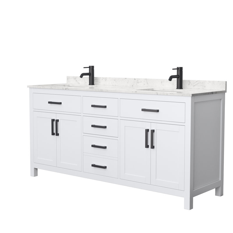 Fantastic value and a classic design. The elegant vanity set has it all, with quality touches like brushed metal accents, dove-tailed drawers, cultured marble counters, and soft-close doors and drawers. Ample storage and a double-depth lower drawer give you plenty of room for those bathroom necessities. Do your bathroom right, with the beautiful vanity series.