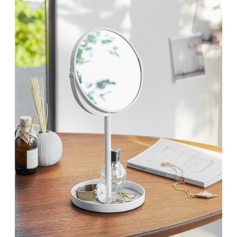 Functional: The mirror rotates a full 360 degrees, offering 1x magnification on one side and 3x magnification on the other. The bottom tray corrals small jewelry and cosmetic accessories to free up counters, desks, tables, and drawers.