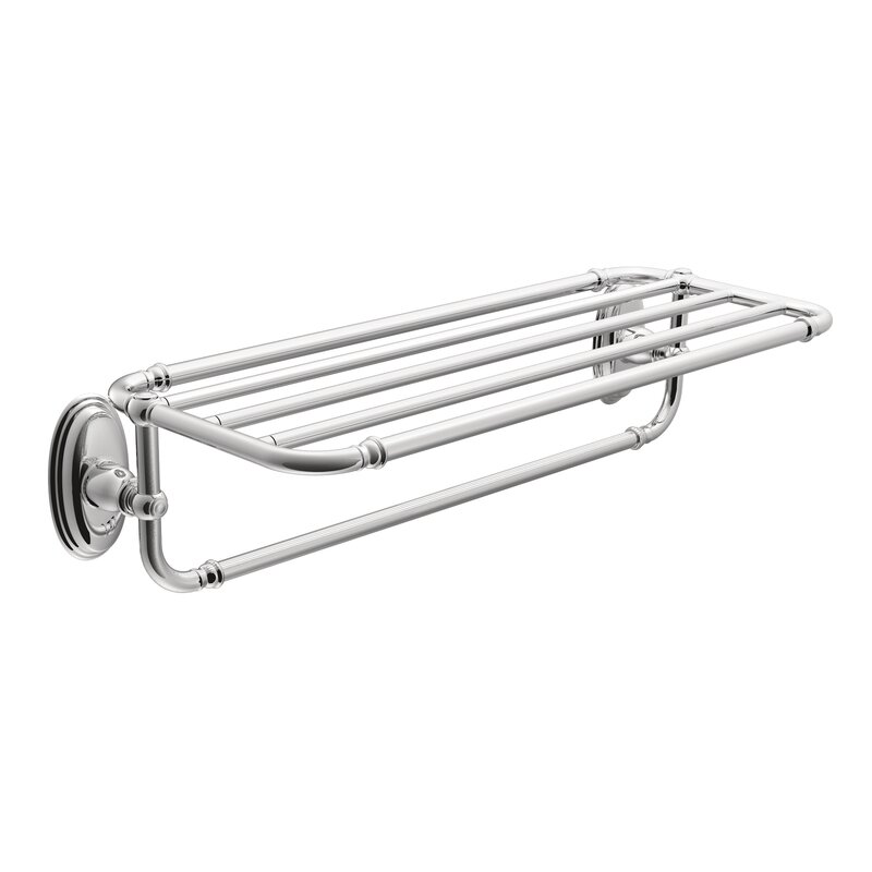 Featuring classic design, the Moen Kingsley Bathroom Towel Shelf offers enthusiasts of traditional style the opportunity to make their rooms stand out. Designed to match the Moen Kingsley series of trims, this attractive towel shelf for bathrooms comes with mounting hardware and a template for easy home installation. A brushed nickel finish brings the warm look of stainless to your bath. This towel shelf is backed by Moen’s Limited Lifetime Warranty.