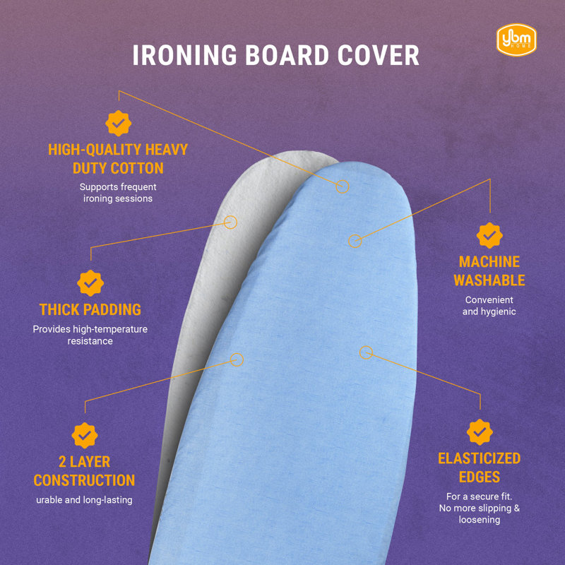 Ybm Home ironing board covers are made with truly superior construction and quality! This construction is our best-selling ironing board cover and features everything to make garment ironing easy and efficient. This replacement ironing board cover is made of heavy-duty cotton material with padding connected to it. The pad provides an additional layer of protection and creates a smooth, comfortable ironing surface. It has a full elastic band for a tight fit around the ironing board.