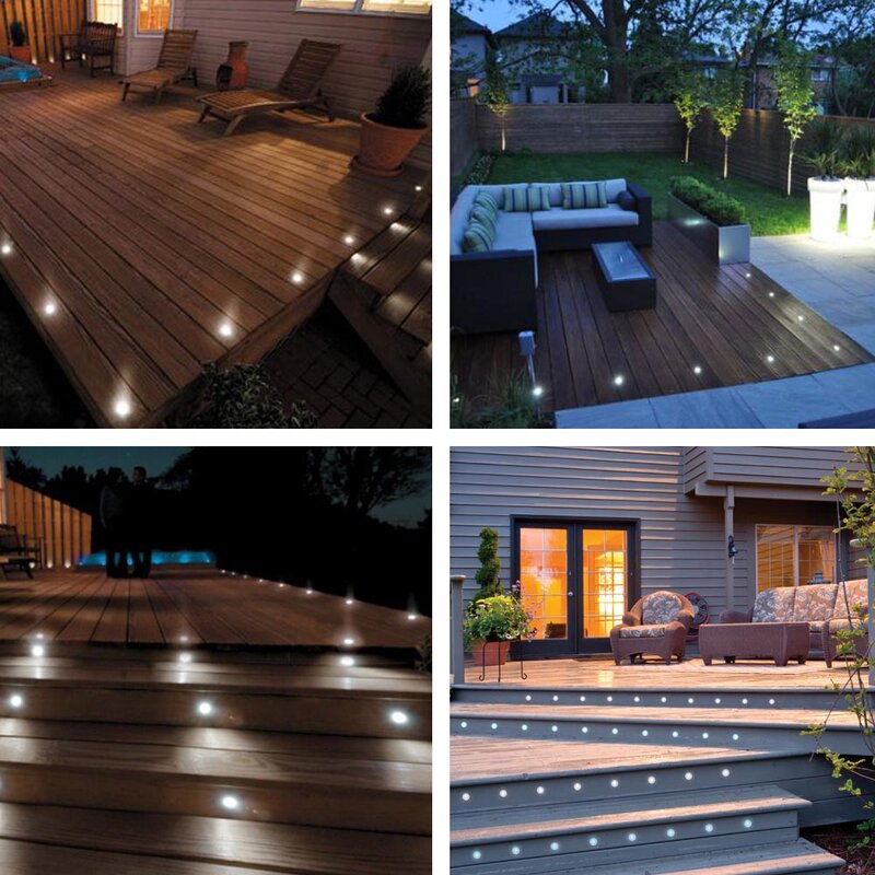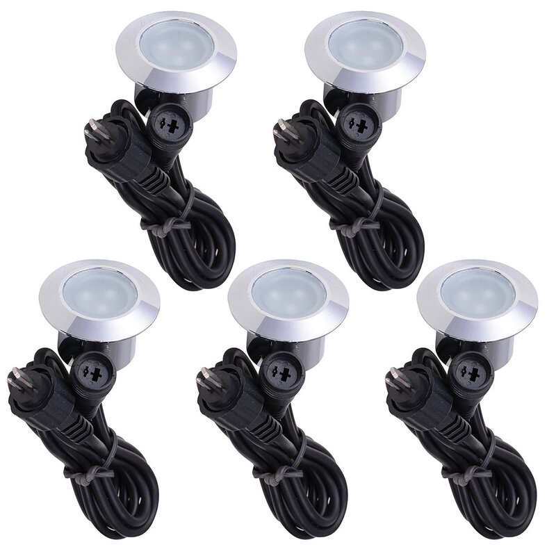 Specifications:- Material: Aluminum Body with Acrylic Cover- Input Voltage: 110V, 600mAh- Wattage: 0.6W/pcs- Lumen: 6-7lm/per light- Light Color: Cool White- Color Temperature: 7000K- Overall Dimension(Dia. x H): 1 9/16″ x 1″(40 x 25mm)- Cut Hole Size: 1 1/16″(26.5mm)- Transformer: Recommended 12V 3W (EXCLUDED)Package Contents:- 5x LED Deck Lights- 1x ManualNotice:- the transformer must be purchased separately.