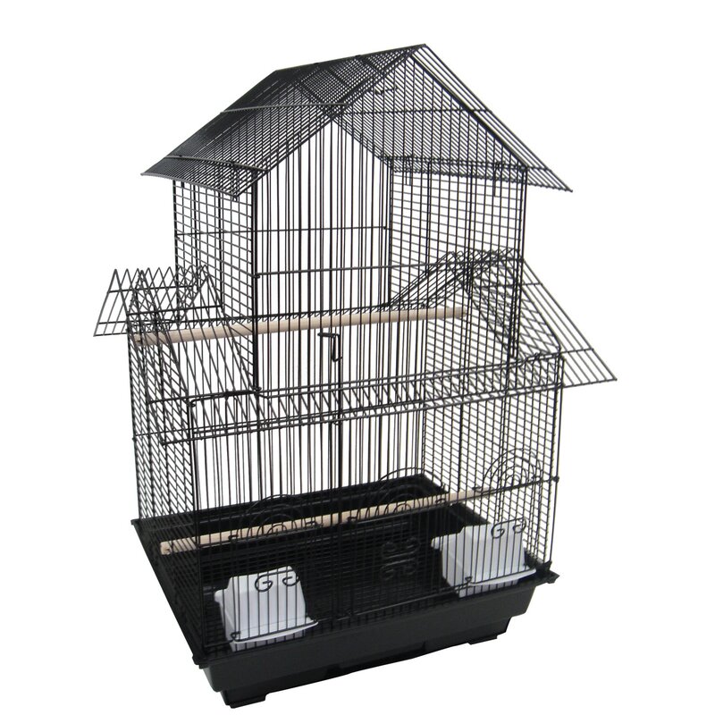 I bought this for my two parrotlets and they had plenty of room to move around. It also has a unique shape that keeps the interested. They lover running all the way around the perimeter of the roof!! The only downside is that I wish there were more doors towards the top of the cage or that the roof opened to gain better access to the top of the cage