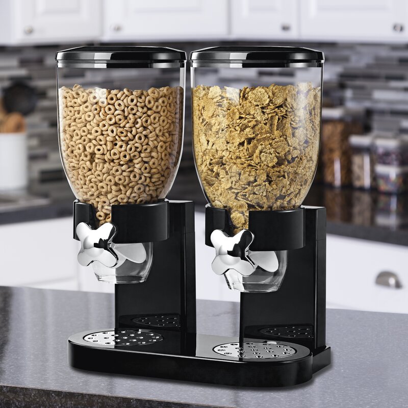 It’s breakfast time, and you have a got a hunch your kids want that crunch. That’s when you dole out the bowls and tell them to serve it up with help from this Double Cereal Dispenser. The dual dispensing technology uses a soft paddle wheel that keeps flakes fluffy as they tumble down and dance into their bowls. While Jake and Emma like turning the easy-twist knob and learning how to serve themselves a standard-size portion, you enjoy the removable bottom tray for easy crumb clean-up. And if it’s never a good time for cereal time in your household, use these large cereal containers to dispense nuts, legumes, and more non-cereal consumables.