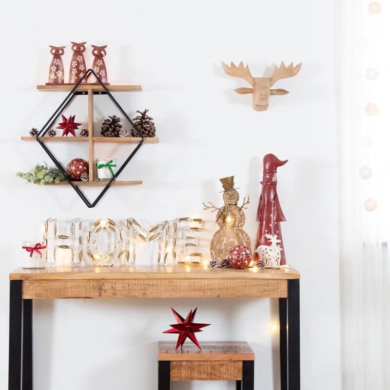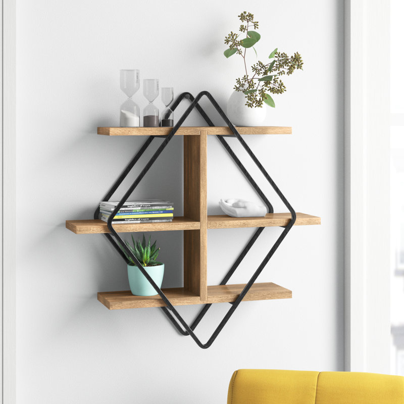 Whether you”re putting small succulents on display or creating a space to show off framed photos, this handy wall shelf is an eye-catching focal point in any room. A contemporary and industrial design made in India, it pairs a double diamond iron frame with three mango wood shelves for a touch of contrast. Arriving to you ready to hang, it provides a decorative and functional space for your home office, living room, or kitchen. Plus, it comes with wall mounting hardware, saving you a trip to the store.