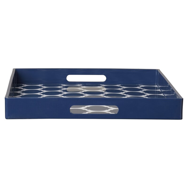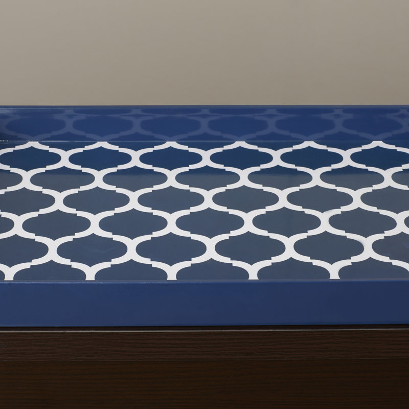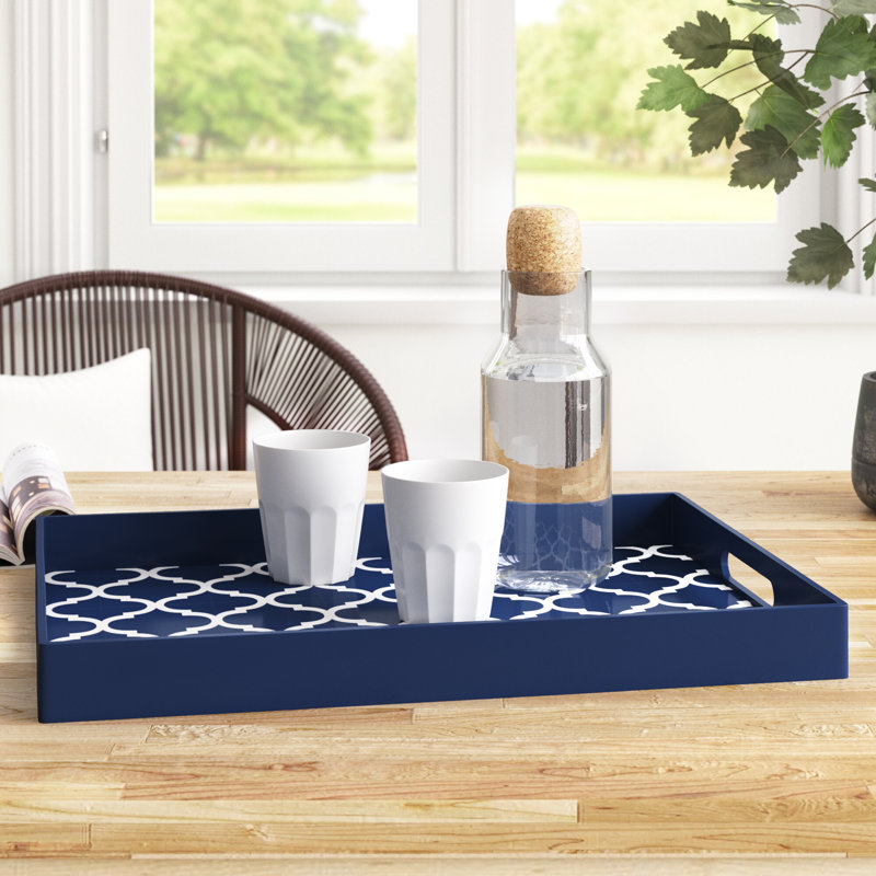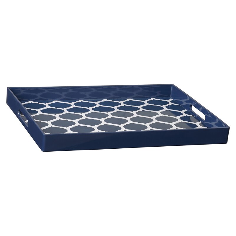 This rectangular serving tray combines a playful pattern with a bright hue for a charming look you’ll love to show off. It’s made from polypropylene with a bright blue hue accented with a white Moroccan trellis motif at the center. Raised edges help ensure that whatever you store stays in place, while the cutout handles make it easy to relocate to wherever the party is. Best of all, upkeep is easy: Simply handwash it whenever it needs a refresh.