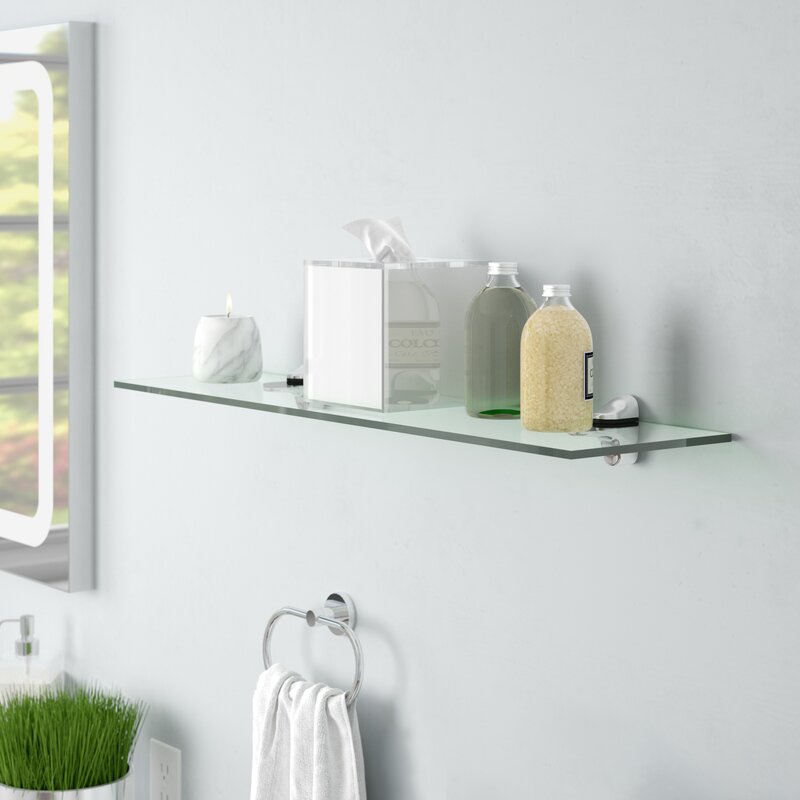 This sleek and space-saving bracket shelf serves as a stylish stage in your bathroom, guest room, or entryway. Its wall-mounted design is made from mirrored tempered glass that’s easy to clean and helps you make the most out of your square footage. Its clean lines and bracket features give it a modern look that can hold up your frame photos, potted plants, and other decorative displays. Plus, for easy installation, this wall shelf comes with chrome-finished brackets.