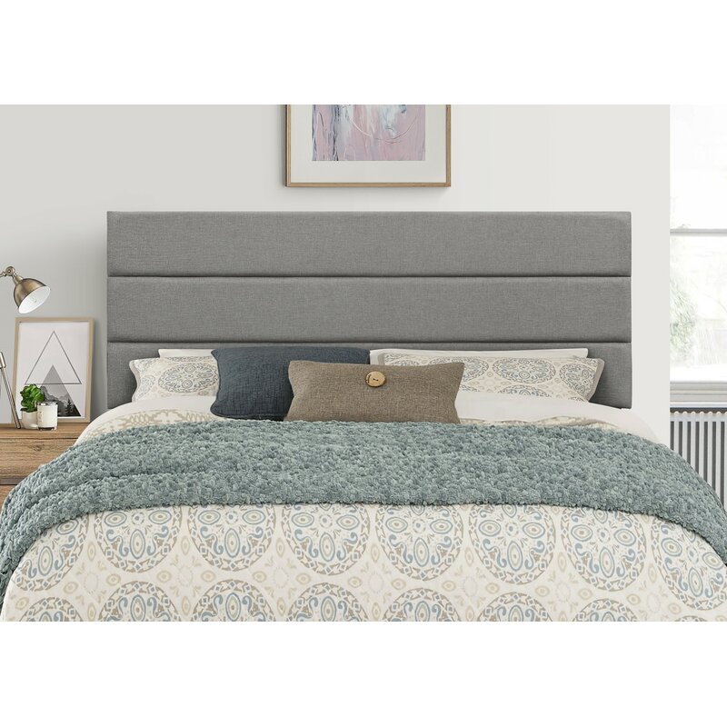 Add some modern flair to your bedroom with the help of this panel headboard. It’s upholstered in polyester and is filled with foam for just the right amount of extra cushion behind your head as you read before bed. Channel tufting decorates the headboard to create a mid-century modern design. This headboard arrives with pre-drilled holes and included mounting hardware, to make installation onto your bed frame a breeze. Some assembly is required before installation.