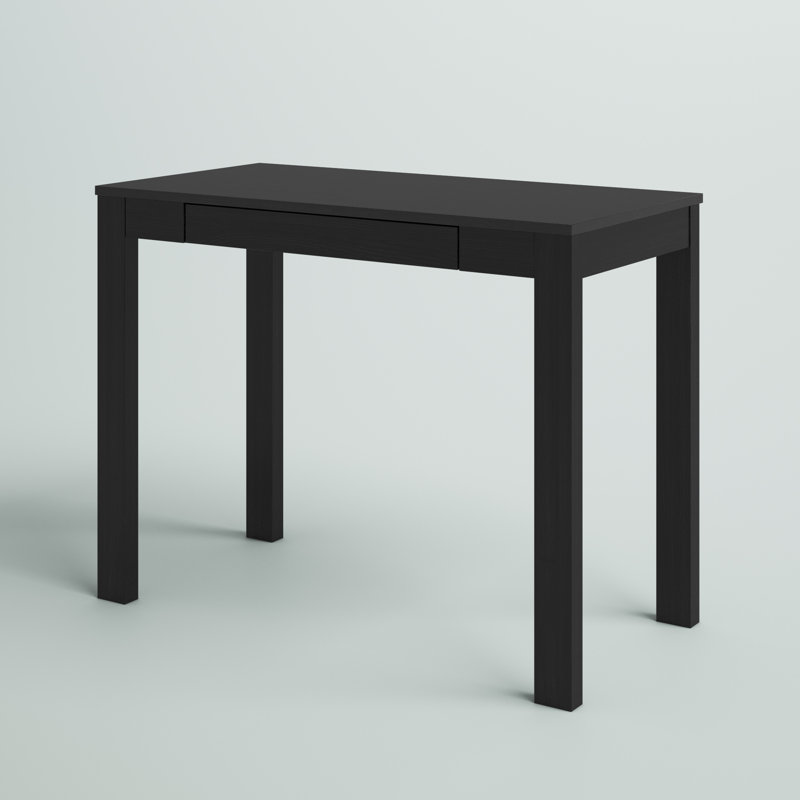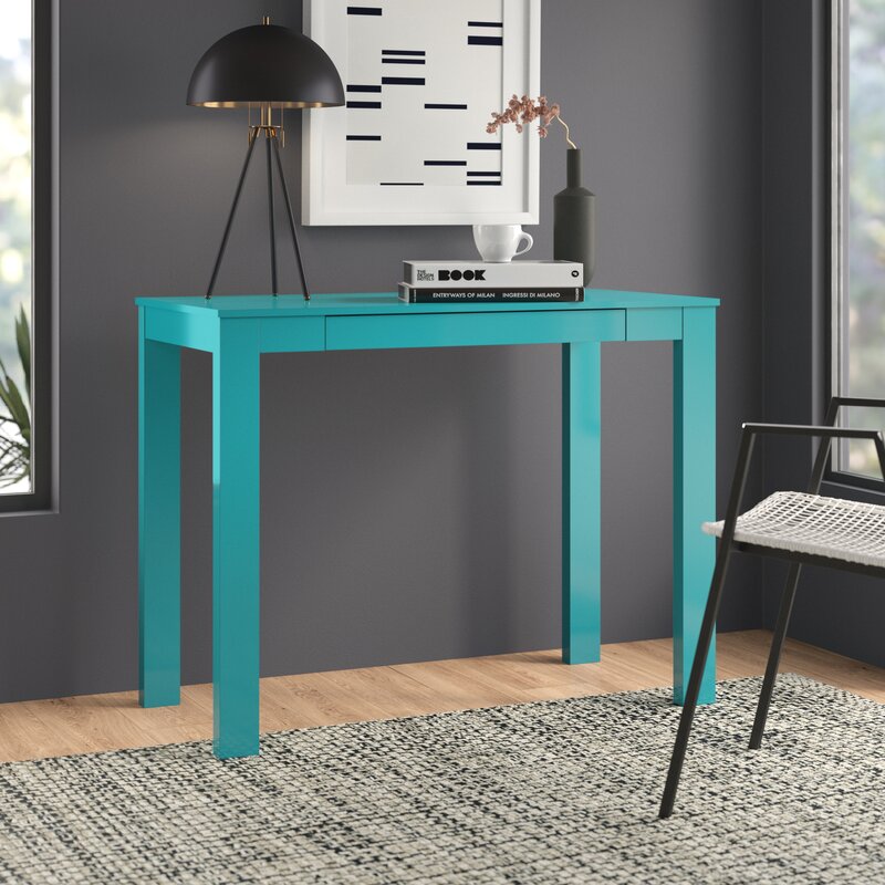 With its clean lines and compact size, this writing desk is ideal for smaller spaces like dorm rooms, or for turning an unused corner of your living room or bedroom into an unobtrusive office area. It’s made from engineered wood, with a solid finish in the color of your choice. This desk has a 39″ wide work surface and its drawer gives you a place to stash pens, papers, and chargers. We love that it has a finished back, so you’re free to place this desk anywhere you like.