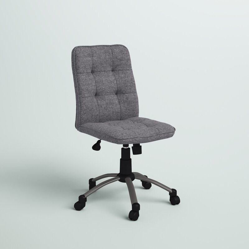Give yourself a spot to sit as you tackle your to-do list with this clean-lined office chair. On-trend and on-budget, this piece is crafted on a steel frame, and perched on top of a five-pointed base with caster wheels, providing must-have mobility for multitasking. This armless design features tufted accents on the seat and is upholstered with linen in a neutral hue for understated appeal. Plus, its foam fill gives you a supported place to do your work. And thanks to a tilt mechanism and convenient lever, this swivel seat adjusts in height to suit your needs.