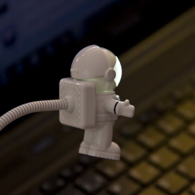 This is the most unusual adorable nightlight.The little astronaut plugs into a USB plug and puts out a bright light, the astronaut is attached to a movable wire and looks like it is taking off into space.This light is very well made and will be a welcome light to my Grandson`s bedroom where he enjoys many NASA decorations.This is a great buy!!!
