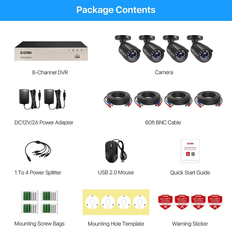 Customizable Motion Detection Zone and Alerts – Be notified when there are unexpected movements. Smart notifications with images will be pushed to your smartphone via ZOSI Smart App. You also can set up the detection zone from your DVR to minimize false alarms.