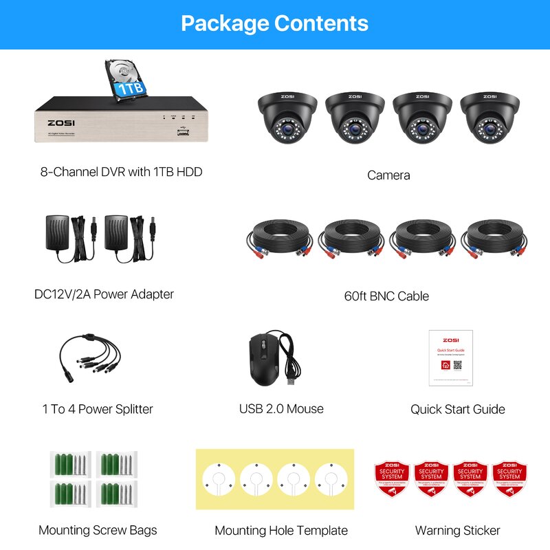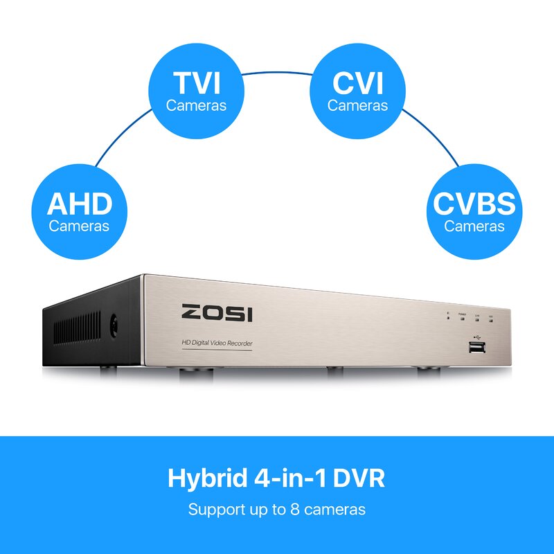 ã€Customize Each Camera with Different Record Modes】 Our ZOSI DVR offers 4 kinds recording modes to meet your needs: Record footage continuously; Record during scheduled times; Only record when detect motion; Recycle record. You can customize each camera with different recording modes, and download the recording files for the USB backup.